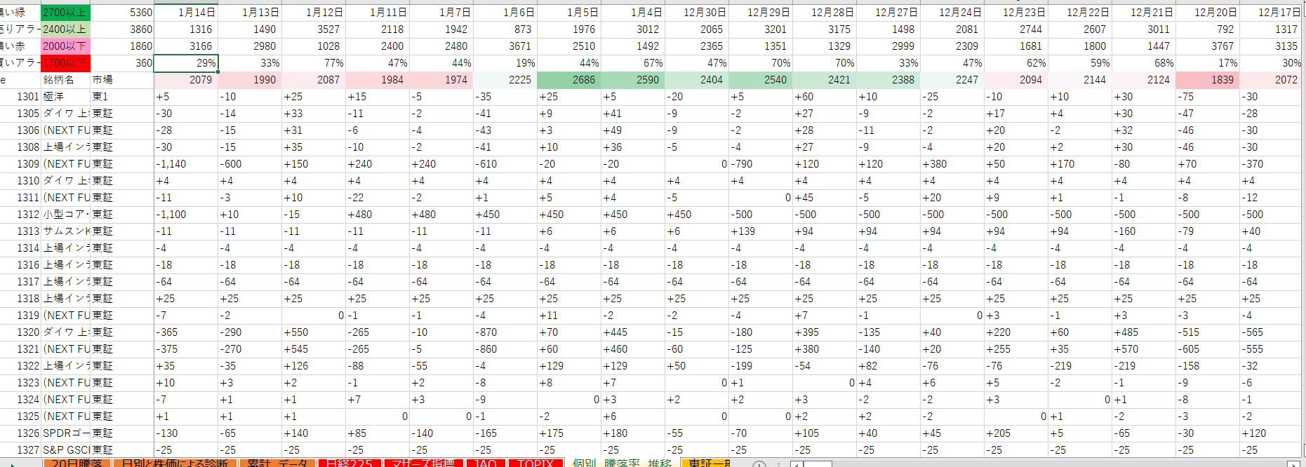 ①ダウ、ナスダック、先物の3指標の結果からの統計
