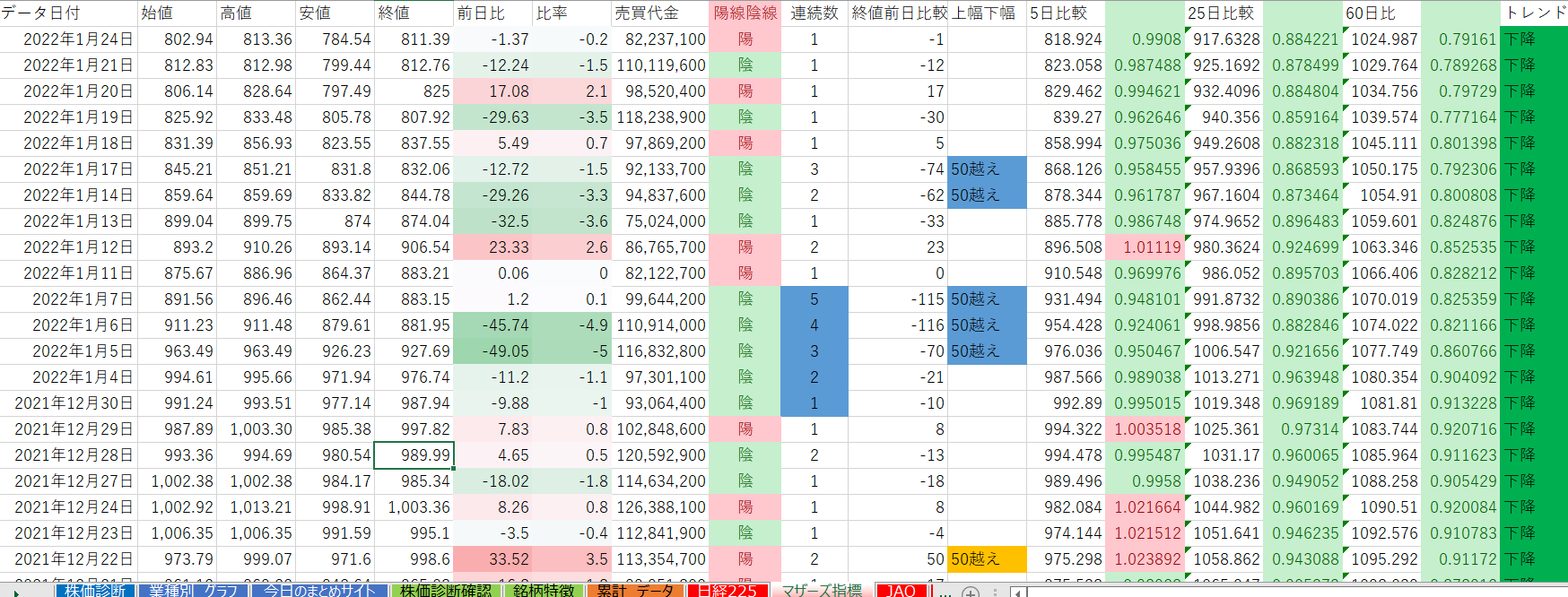 しかし、今はどうかというと、25週線と60週線より5週線が下回っています。