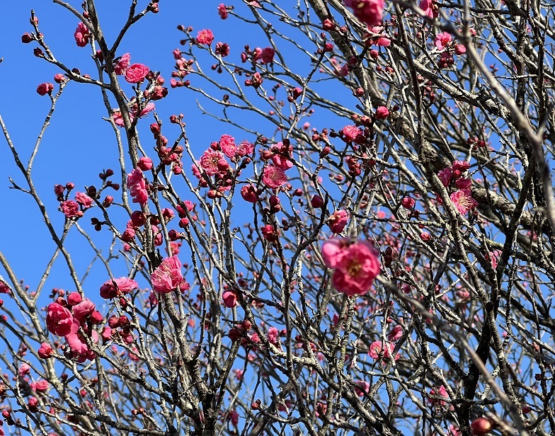 青い空に 紅梅の紅が 映えますね~~。
