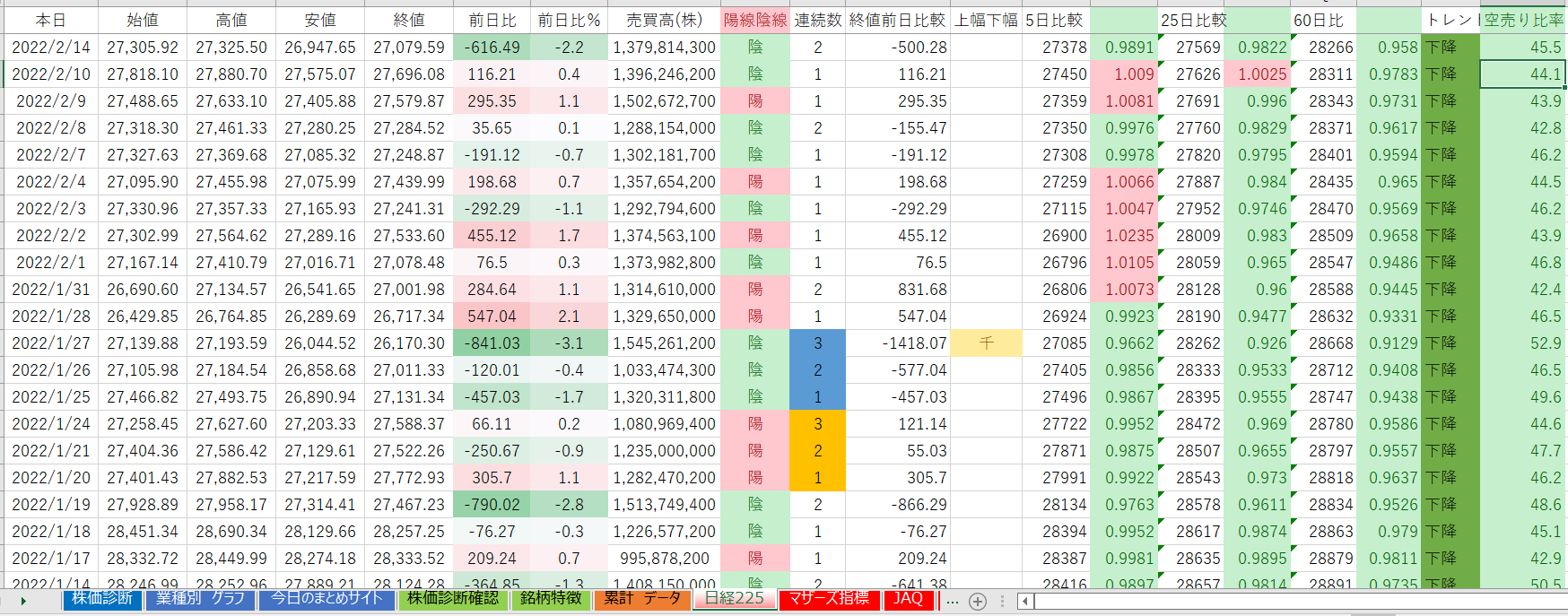 日経平均  ☛  21日