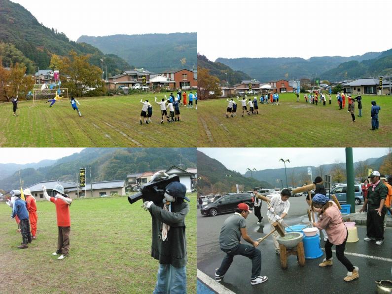 大分サッカーチーム:トリニータのゴールシーンを選手・審判・観客・カメラマン・なぜかお巡りさんと、田んぼのなかは、大賑わい♪けらけらけら
