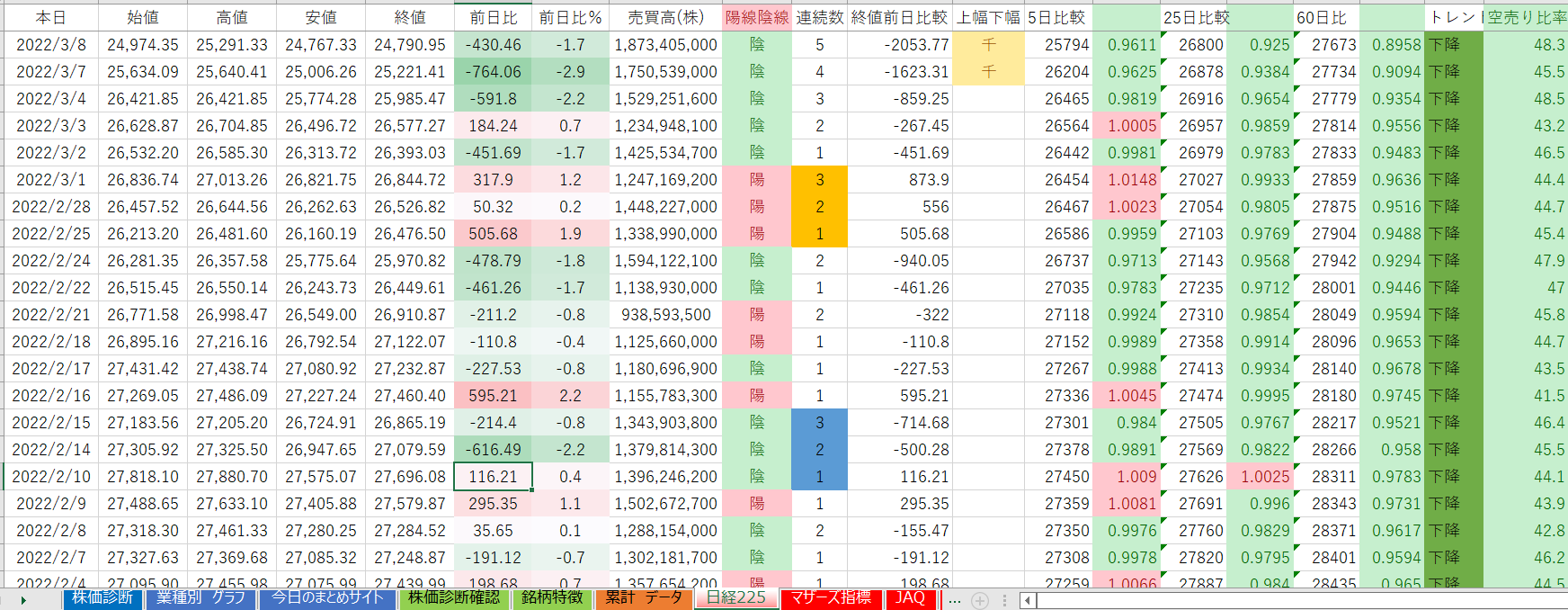 下降トレンドが多くなってきました。