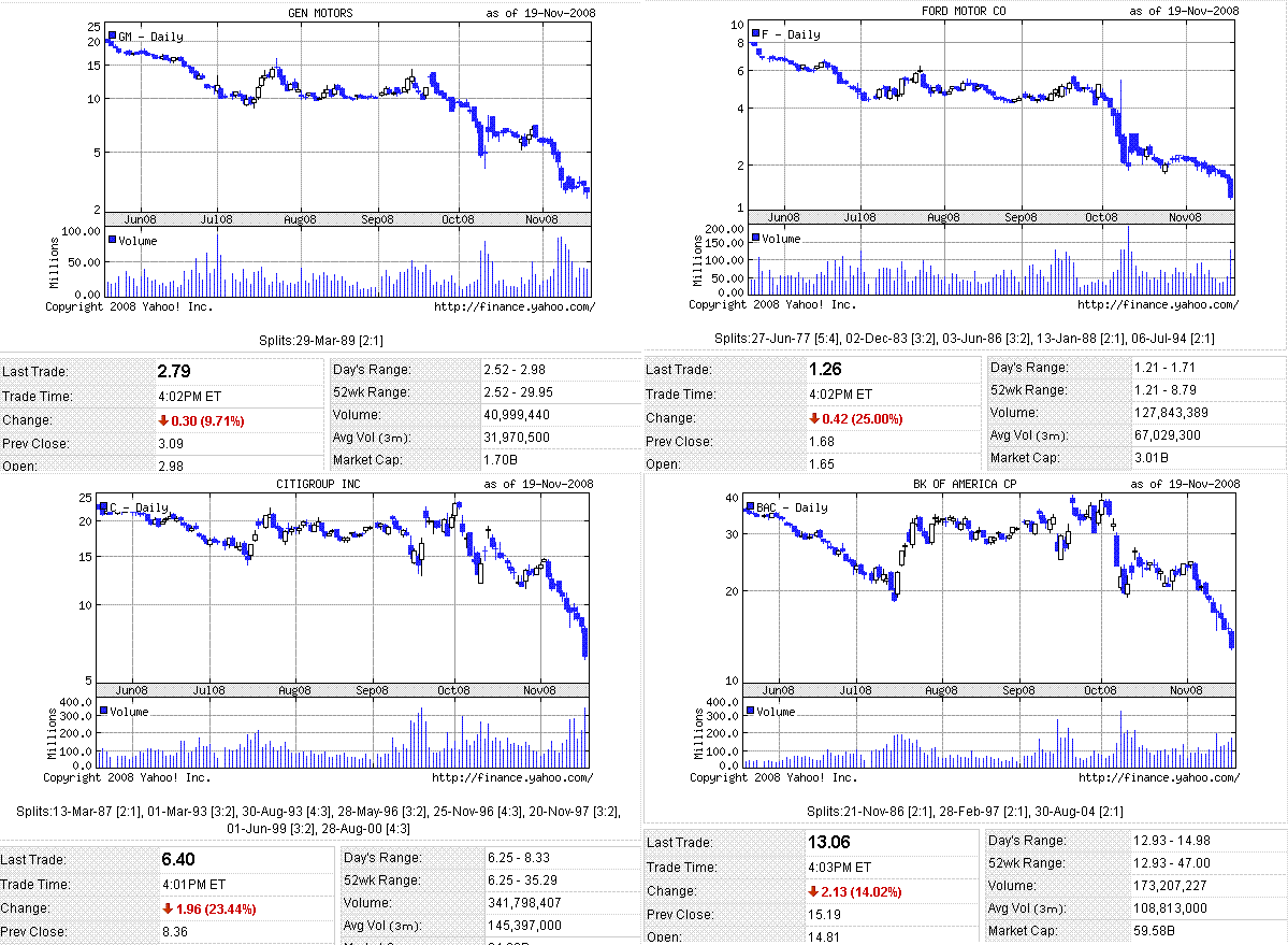 ∇ダウ:7,997.28(-427.47) ナスダック総合指数:1,386.42(-96.85) S&P500:806.58(-52.54)