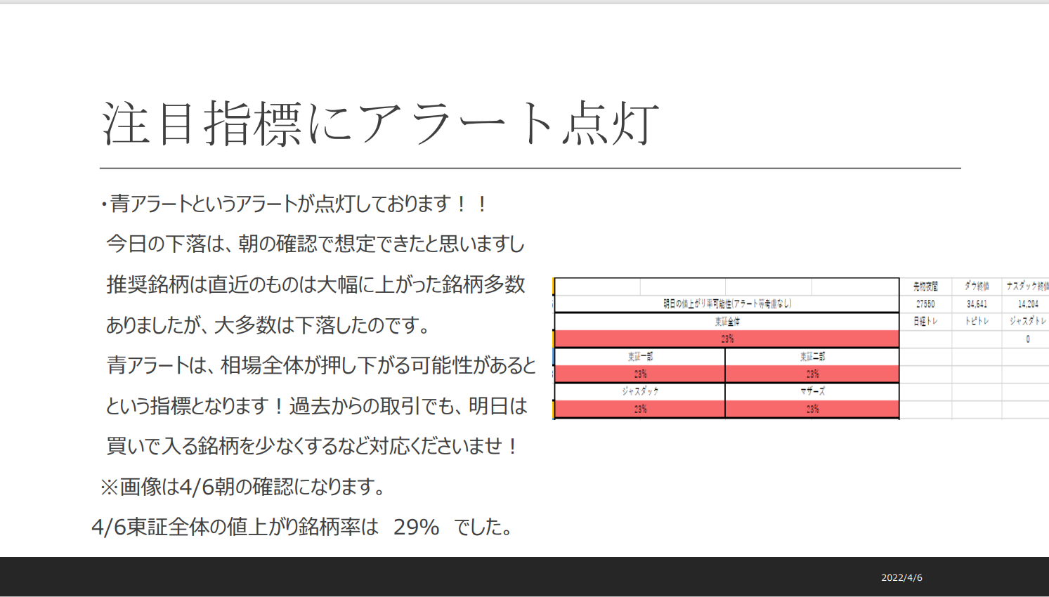 大幅下落(値下がり銘柄多数)を知るシステムがあります。