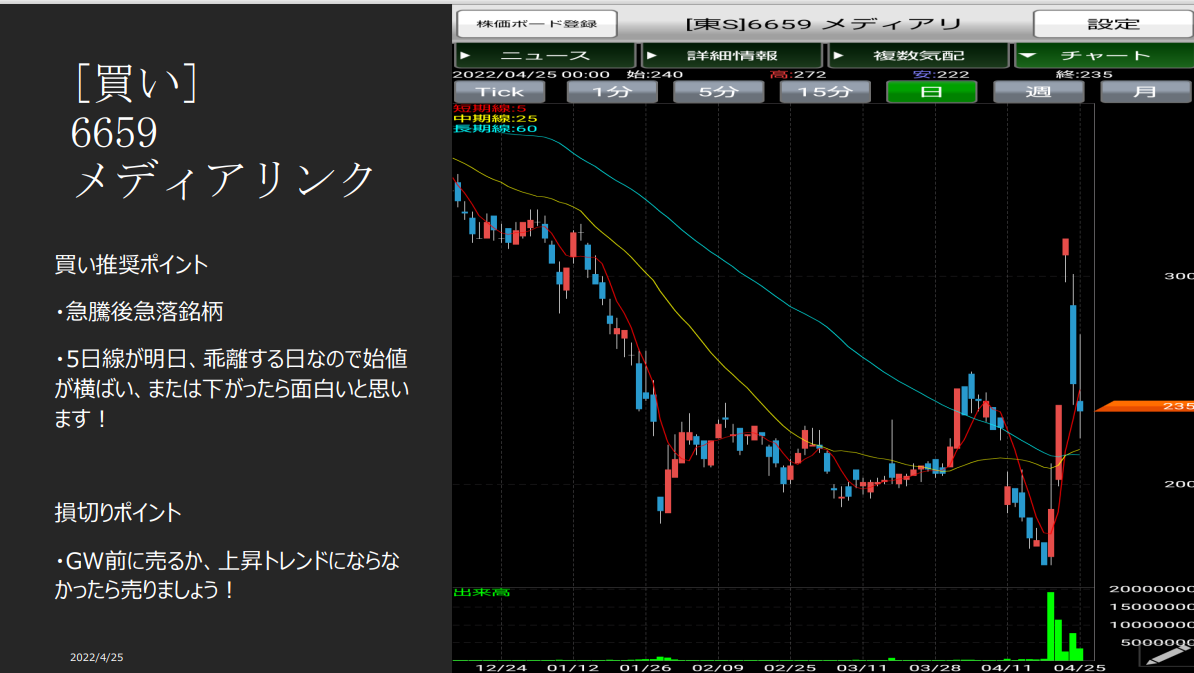 チャットワーク内で過去に推奨させていただいた銘柄です。