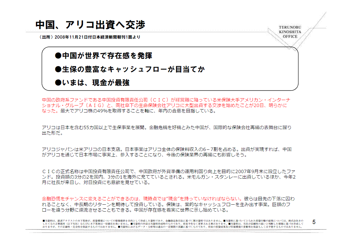 (出所)2008年11月21日付日本経済新聞朝刊1面より