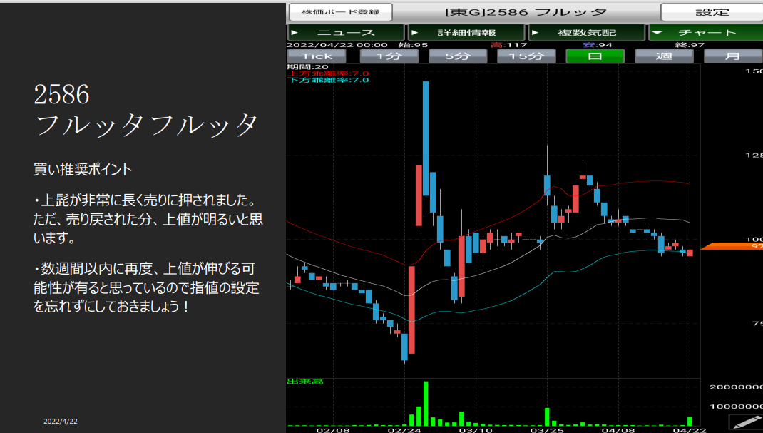 チャットワーク内で過去に推奨させていただいた銘柄です。