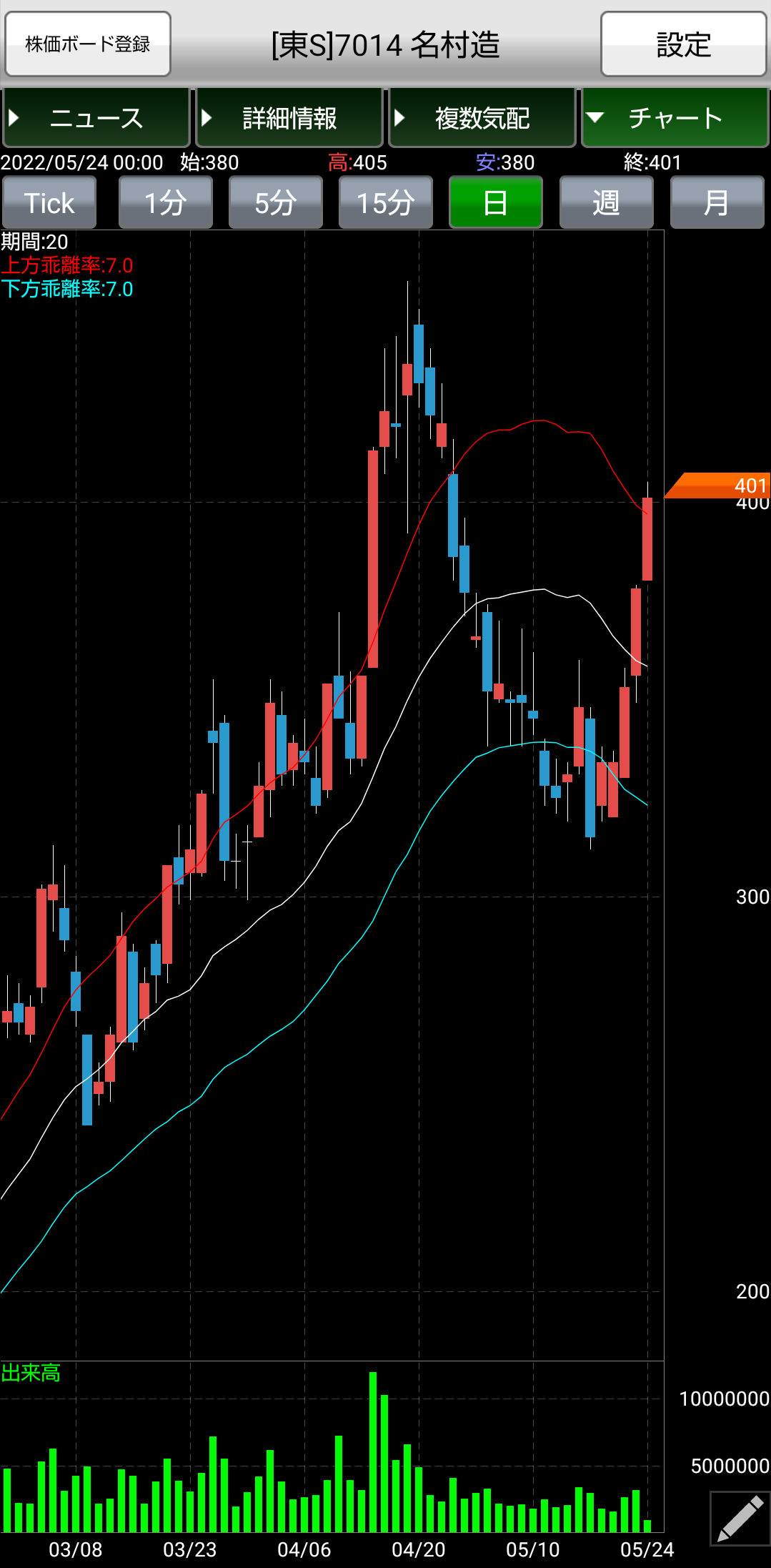 約定条件 ☛ エンベロープの上線接地銘柄