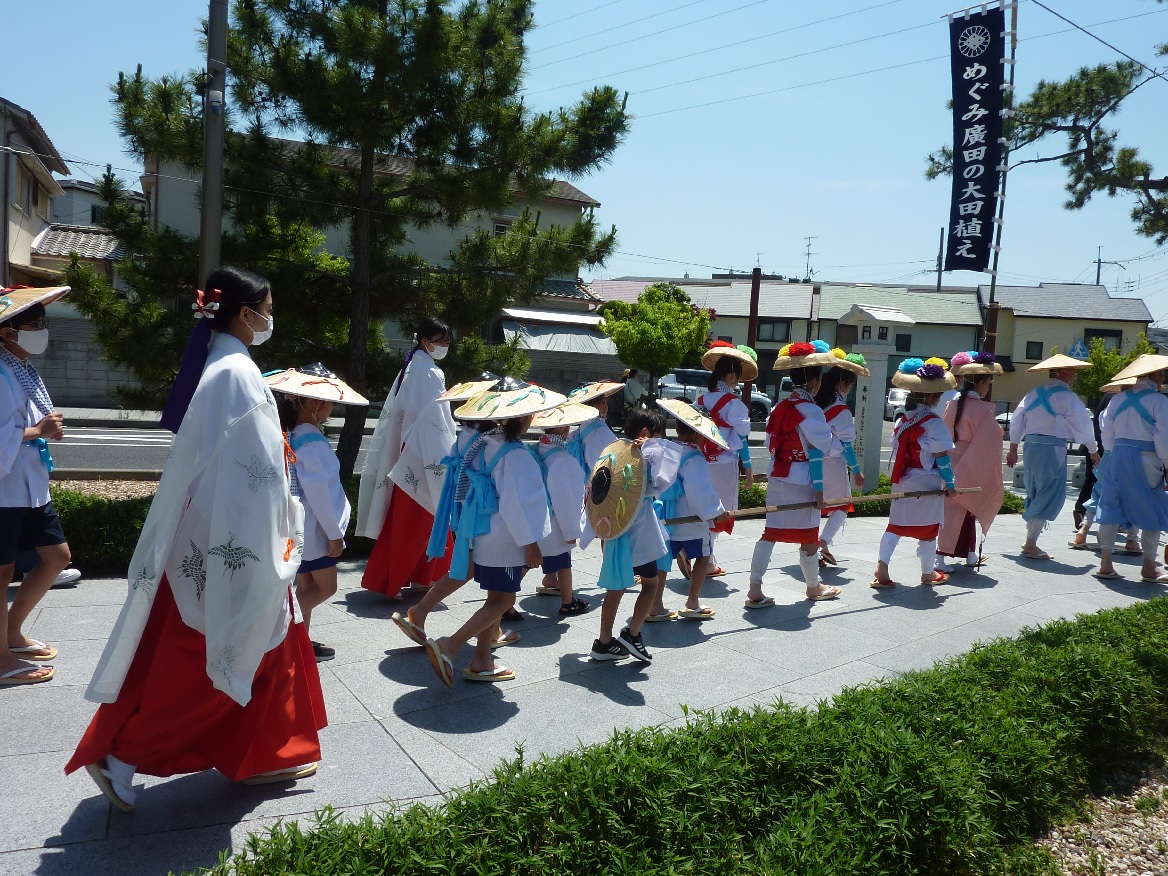 廣田神社では早乙女、田童、物忌童女…などそれぞれに扮して、