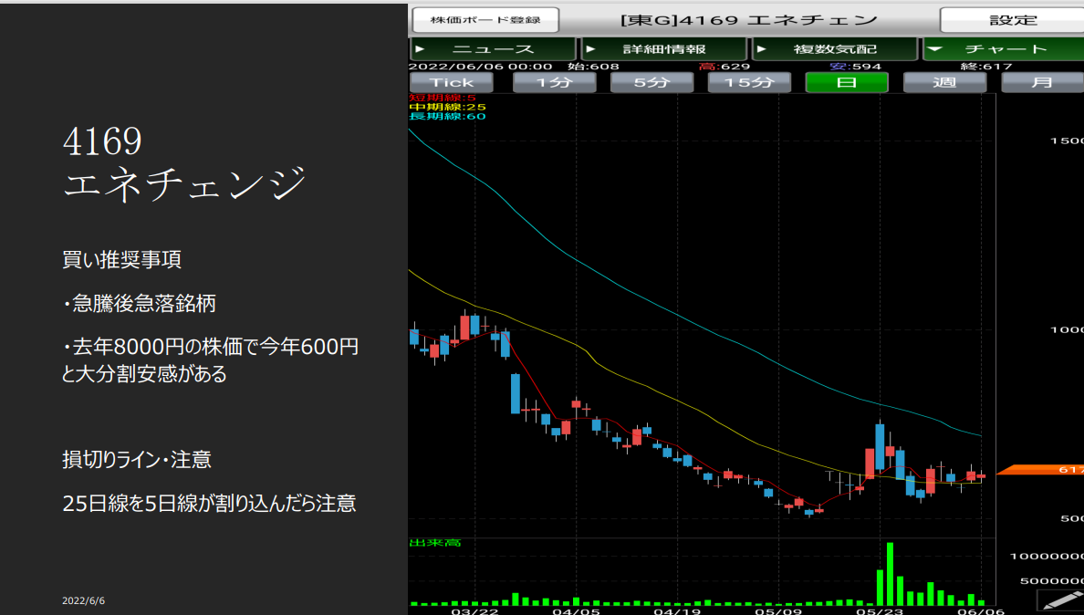 ※画像2枚目 4169エネチェンジ現時点でのチャート