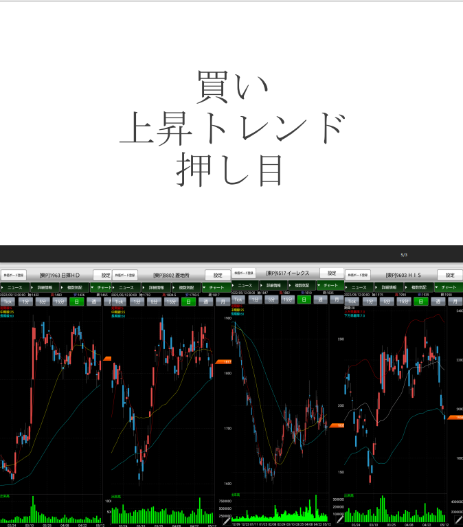 上昇トレンドの押し目+エンベロープ下線接地銘柄です。