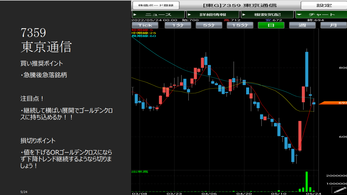 ※3枚目 7359 日本通信の推奨時画像 ストップ高5回