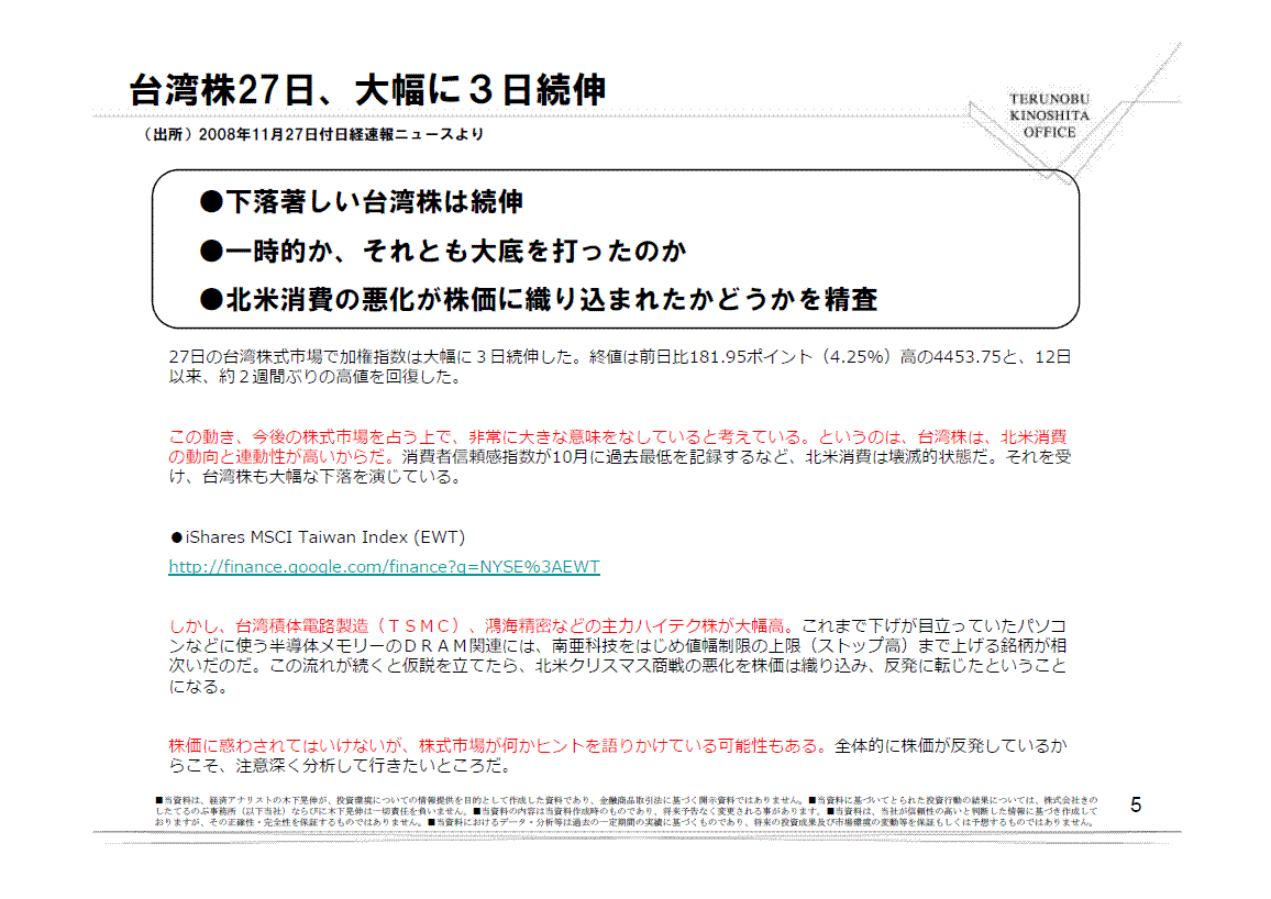 というのは、台湾株は、北米消費の動向と連動性が高いからだ。