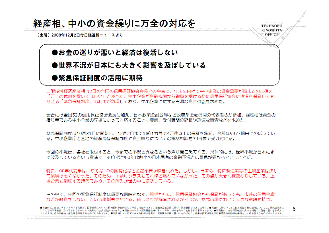 その中で、今回の緊急保証制度は重要な意味をなす。