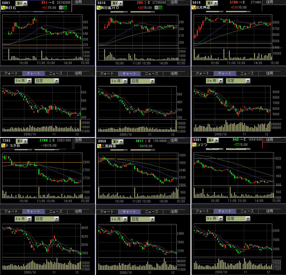新日石と新日鉱以外にも、出光や昭和シェルなど石油株全般が買われました。