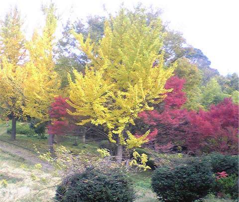 紅葉の中にもぺんぺん草や暖かいとこではスミレが咲いています。春も冬も同居です。
