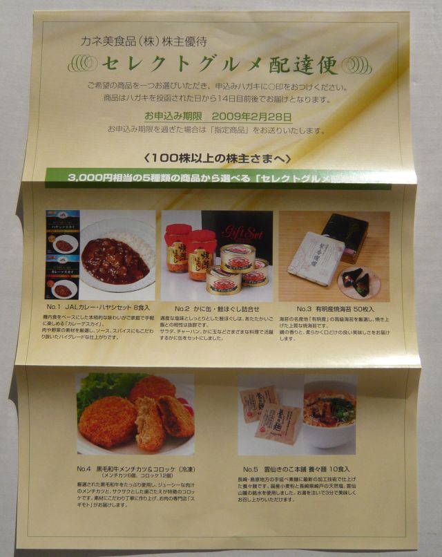 本日(2669)カネ美食品の株主優待申込書到着しました。
