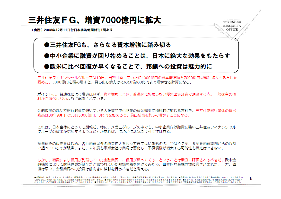 的に応じる方針だ。三井住友銀行単体の貸出残高は08年9月末で58兆5000億
