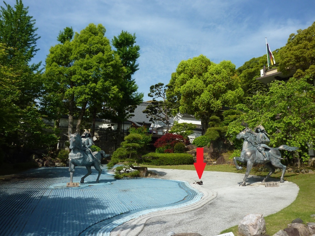 平敦盛と熊谷道真との間にゴロゴロほたえる猫ちゃん発見。