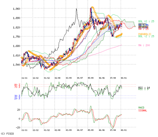 本銘柄はチャートの形ではない。信用倍率0.42を基にした。さてどうなるか?