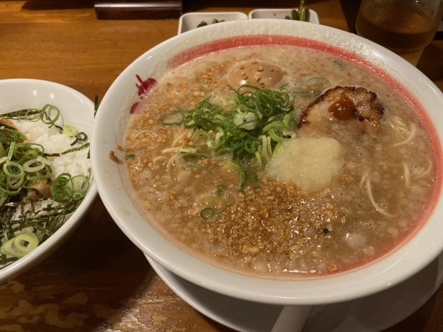 いつもいただいているニンニクラーメン+豚めし。(写真②)
