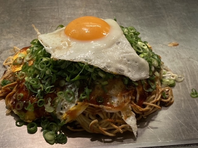 試合開始前は、広島駅ビル内でお好み焼きを、