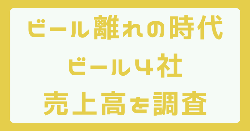 今回はビール離れを意識しつつ、ビール大手の以下4社の株価や売上高、今後の戦略について調べましょう。