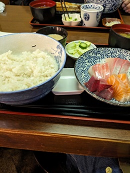 刺身の麦とろ定食を食べてドリームコーヒーでエルサルバドルの