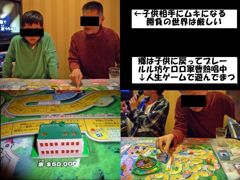 ゲームとは思えないほどリアルに郷が大もうけしていく、後を追うルル坊に、トドメの6万オールなラッキカードで勝負アリじゃwルルパパは、トップゴールから4周遅れでゴールと借金をしながらマイペースでゴール♪勝負の結果は、郷の逃げ切り106万ゼニとボーリングのお返しじゃwけらけらけら
