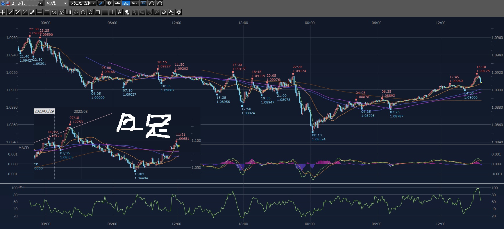 リバからの値を維持できず下げたけど夕方から上げてきてる