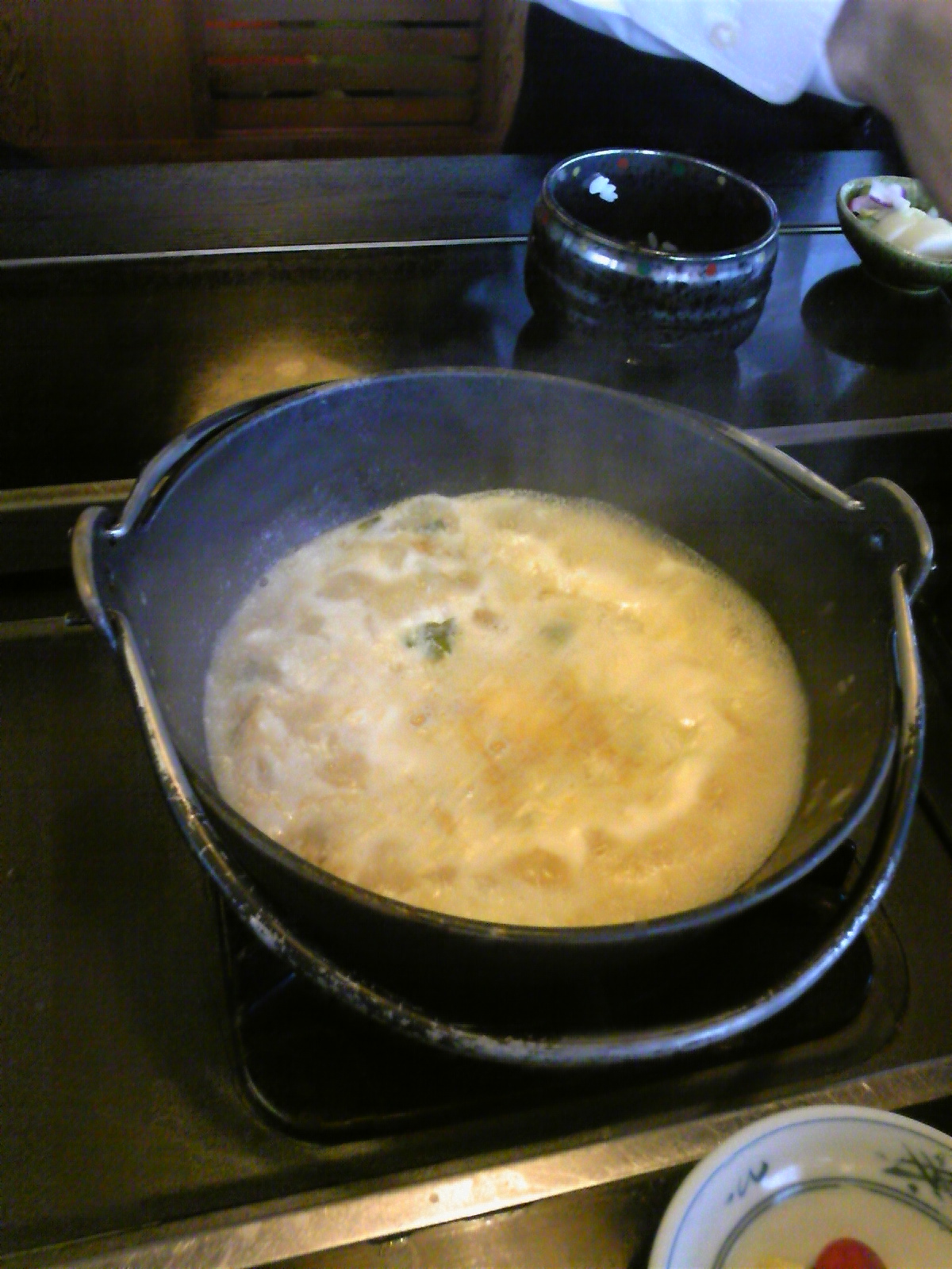 うどんを食べ終わるとご飯と卵を入れ雑炊に