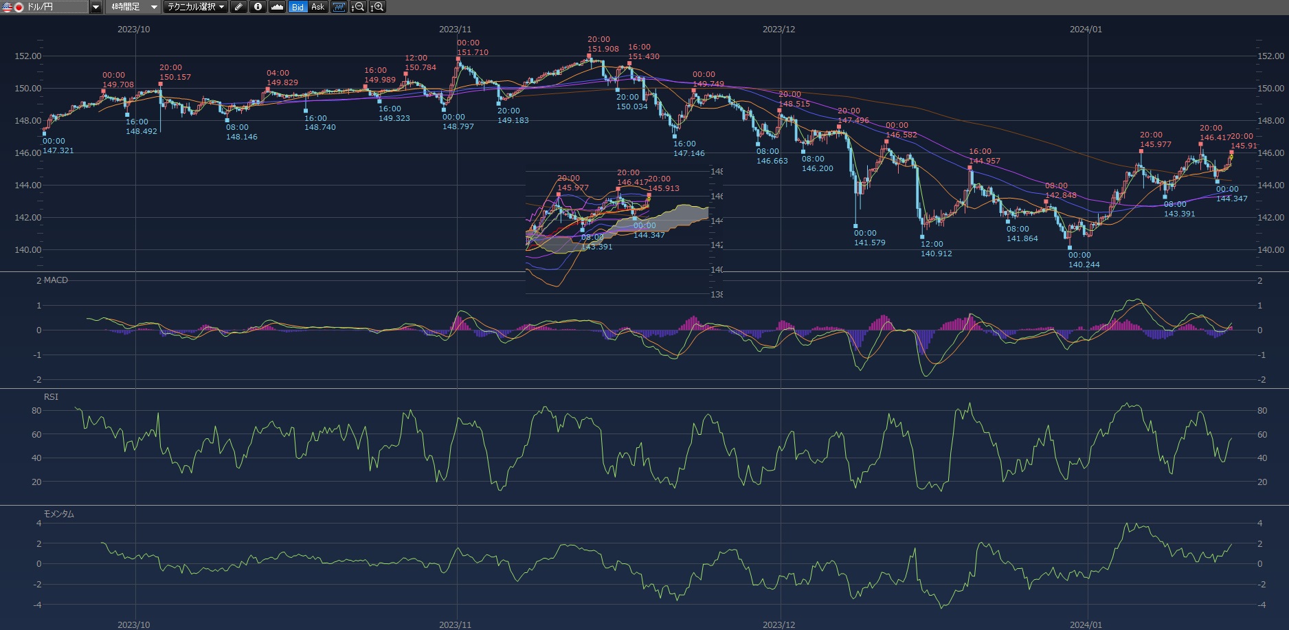 146円行きそうで行かないのね