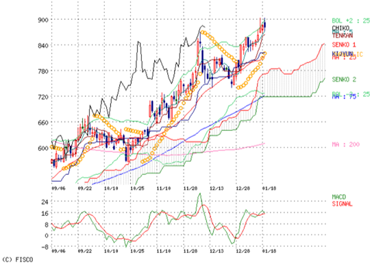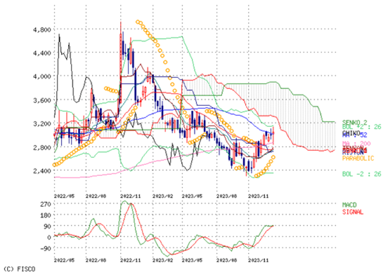 画像3 週足チャートの形と半導体関連で