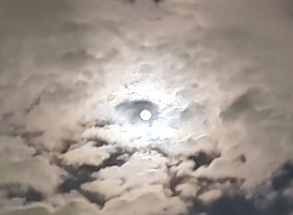 ま、月が、というよりは、月光を浴びた雲が、ということですね。