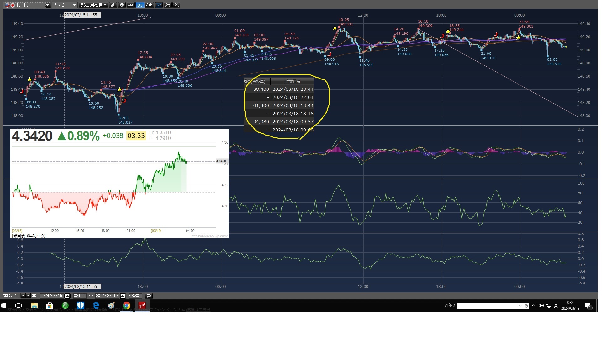 気が付いたら高値から落ちて来てて残念利確