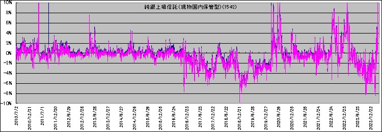 純銀ETF(1542)に関して,基準価額と取引値の乖離が大きいことについて東証と運用元が注意喚起をしています。