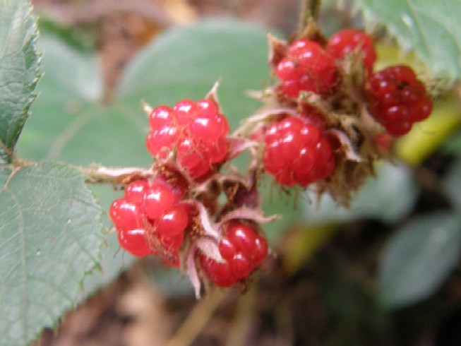 写真は途中で見かけた赤い実。左側がヤマホロシ(なす科、ナス属)、右側がフユイチゴ(ばら科、キイチゴ属)。その他にも、ハナミョウガ、ヤブコウジ、センリョウと赤い実がなっていました。アオキの実はまだ青く、赤くなっていませんでした。