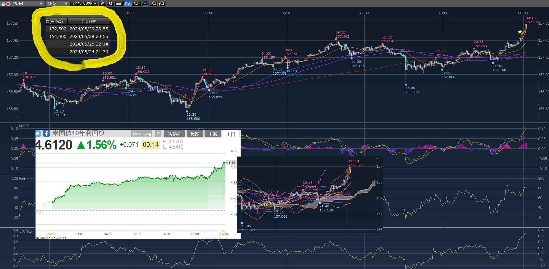24日の高値掴みは絶対上がるやろ思って50万通貨買ったので一番下がったときは含み損20万余裕で超えてましたからw
