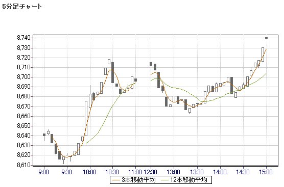 日経平均株価 8,739.52 +140.02 +1.63%