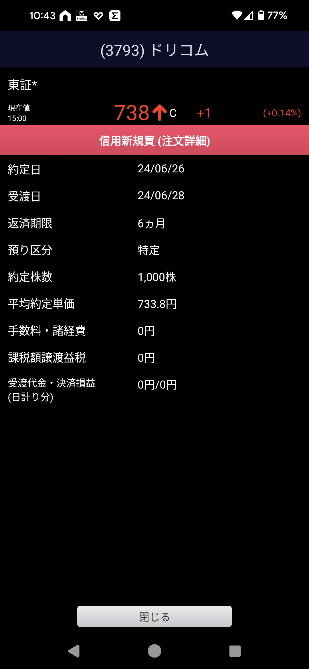 何やらエラい上下してたので怖くて信用取引全部返済してしまいました。