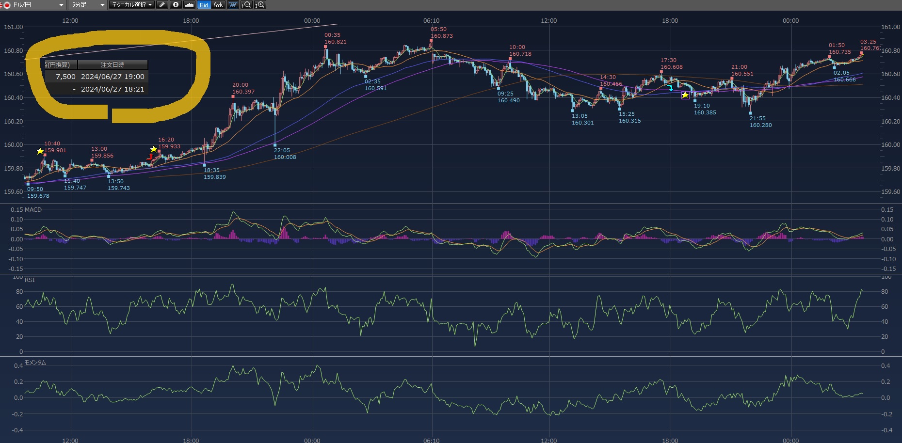 よう見たら前回の高値がすぐそこやんてことでビビッて指値注文