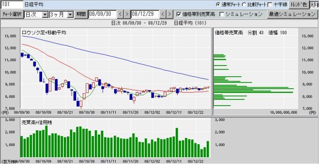 「半場立会いとしては最後の大納会となるが、過去10年間における大納会の日経平均の騰落状況をみると、6勝4敗と勝ち越し。2001年~2004年にかけては堅調な推移を見せたが、2005年、2007年と200円超の下落となった。2008年相場は、東京市場が正月休み中に外部環境が悪化し、大発会に日経平均が史上最大の下げを記録したことから躓き、その後も一本調子で下値模索を余儀なくされたことを勘案すれば、とりあえずあすの大納会では持ち高調整の売りが出ると思われる。(トレーダーズウェブ)」