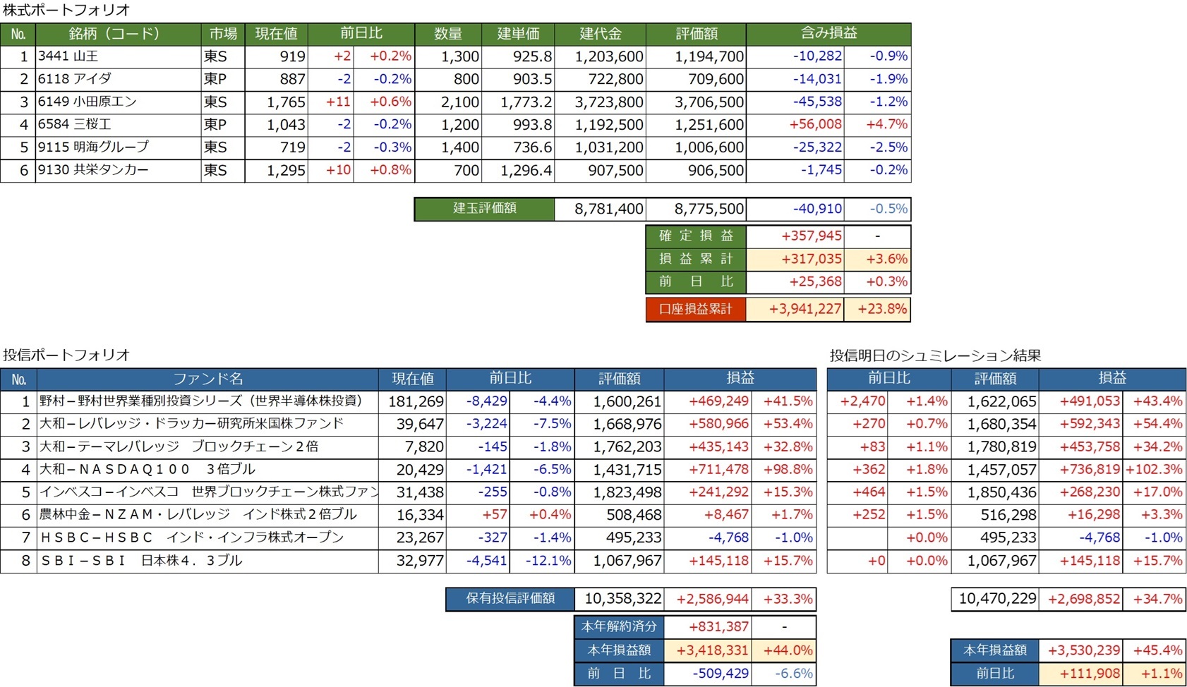 昨日はNKが1000円超下落も小型株中心のPFにはほぼ無風の状況。