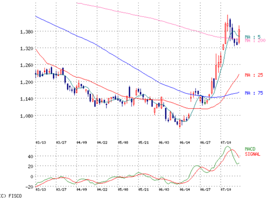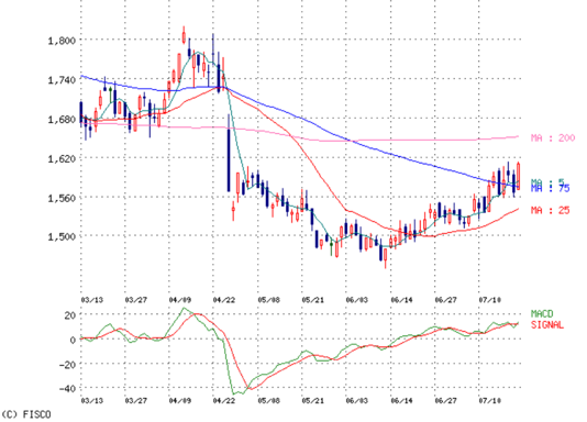 200日線よりは下だが、5と25は上向きで、75を越えたので。
