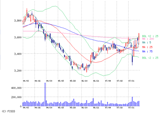 急落しても前回下値と同じレベルで、反発し200を越えたので。