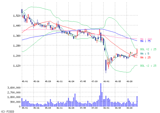 5日線以外は右下向きなんだよな。25がかろうじて横向きと見れなくもないが。他のチャートを見てやっぱり4本線とも右上がりが大切なことを、強く悟った。