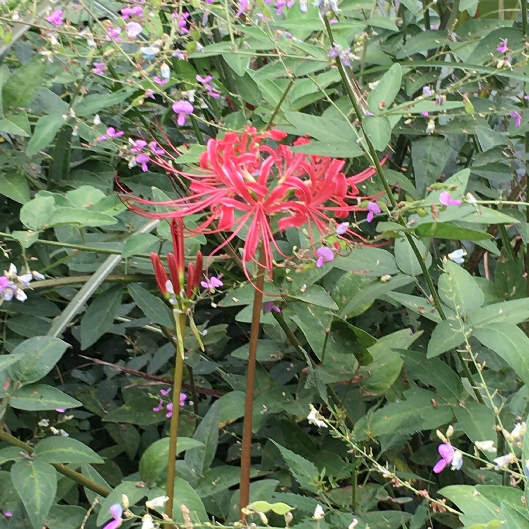 大沢池の畔でポツンと咲いていた彼岸花。