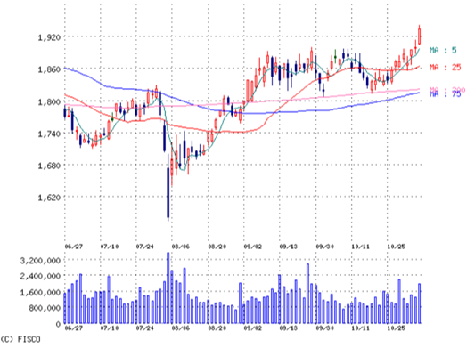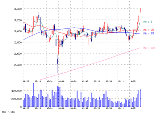 出来高上がって、株式も上がって。