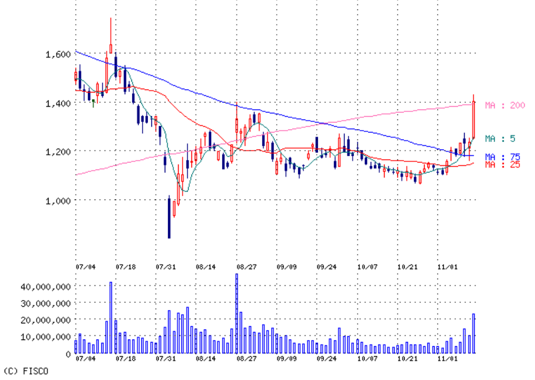 昨日決算発表で。今日の寄り付き急落して始まって。