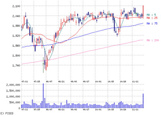 ☆ジャフコ 買い 100株 2120円
